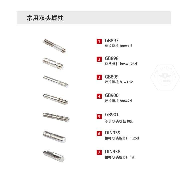 B級等長雙頭螺柱引用國家標(biāo)準(zhǔn)GB901-88,規(guī)定了螺紋直徑為M2-M56、B級的等長雙頭螺柱。