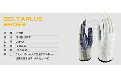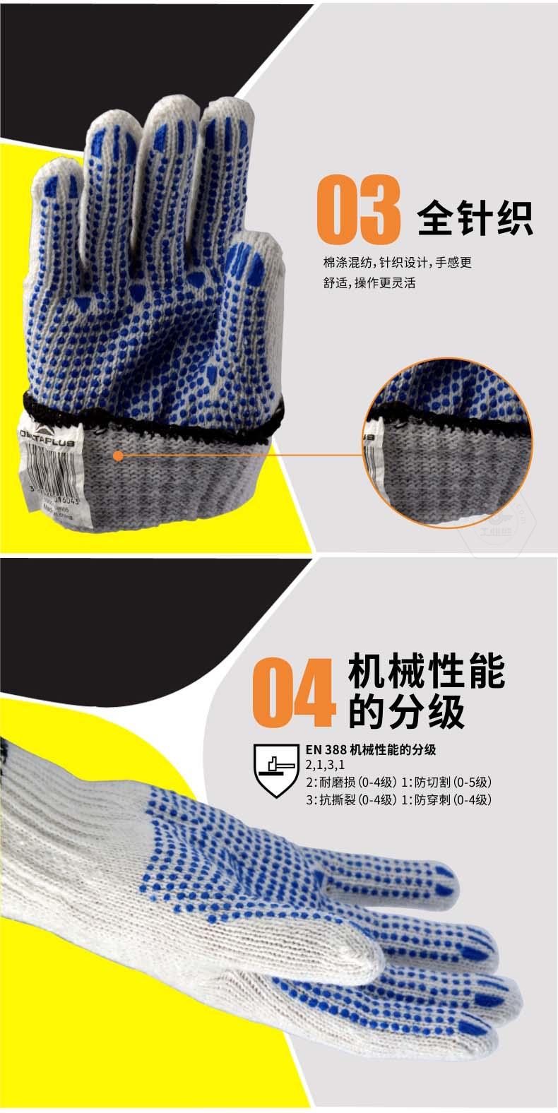 商品名稱(chēng):代爾塔 PVC點(diǎn)膠 滌棉 線手套 工作 勞保手套 防滑耐磨損抗撕裂 208006 白色/藍(lán)色9#